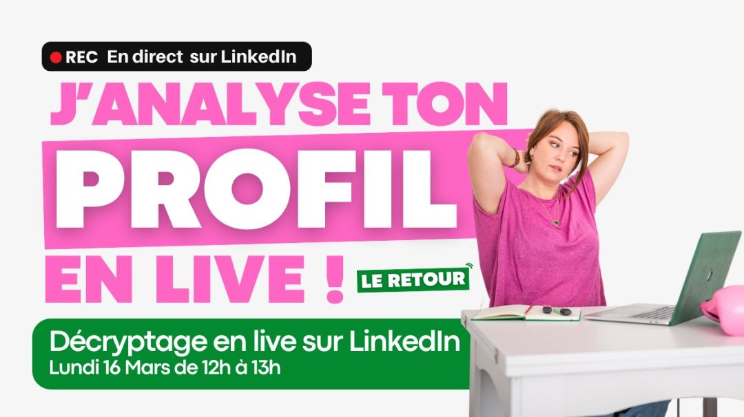 Alors si tu veux aller plus loin, rejoins-moi en live lundi midi pour analyser ton profil LinkedIn en direct.